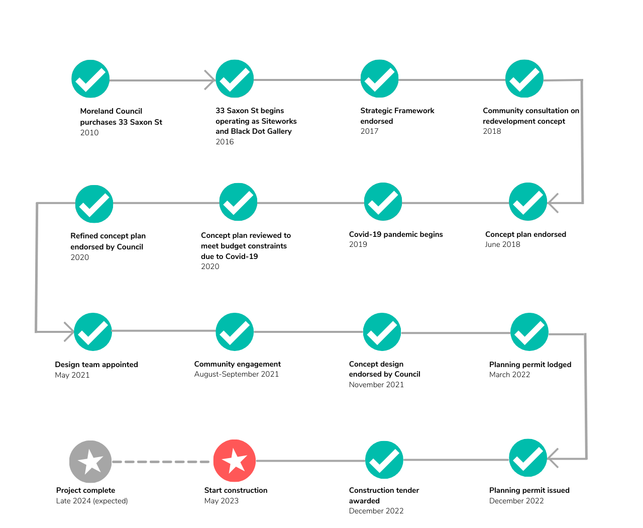 Visit the Conversations Merri-bek project page for the latest updates on the redevelopment of 33 Saxon Street, Brunswick. You can subscribe to have updates delivered direct to your inbox.