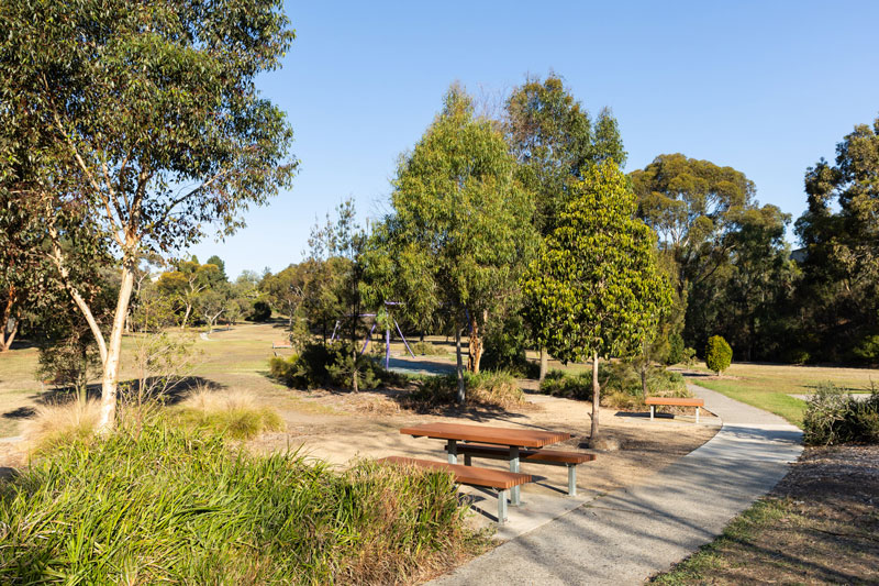 In 2018, Council completed upgrade works which included replacing the existing play space with an exciting new play space set among existing trees, nature play elements, a double trapeze 'flying fox', basketball half court and new tree planting.