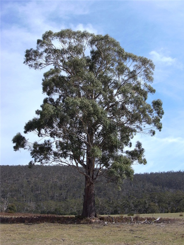 Large straight growning oval tree of 20m+. Rough trunk bark, higher up bark sheds in long ribbons during summer exposing smooth white upper trunk and branches. Small creamy coloured flowers.